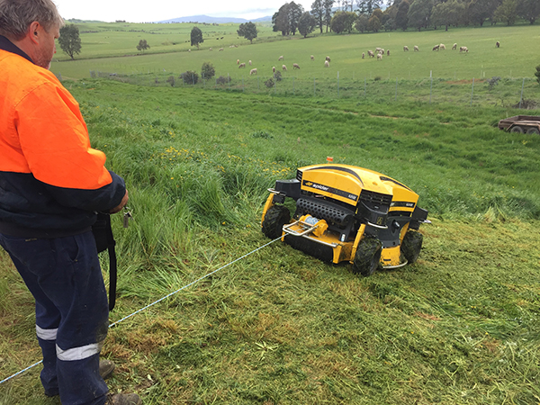 I have a contract to mow around dam walls and reservoirs, which I’ve managed before with a brush-cutter. Following a review with my client, we both agreed that a safer alternative was necessary, and I was also looking for a faster machine. A ride-on or tractor-powered reach mower would have given me some extra speed but the roll-over risk is too high. I employ other people, and you can’t be too careful with OH&S these days.